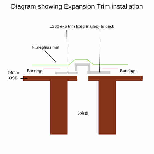 The Expansion trim – used on fibreglass roofs greater than 50sqm. The trim is nailed to the deck, bandaged and the CSM run continuously over the trim.