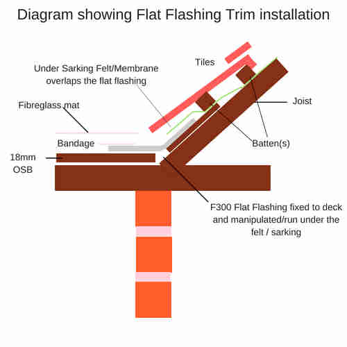 The Flat Flashing trim – used where the flat roof adjoins a sloping tiled or slated roof. Nailed to the deck and run under the roof membrane.